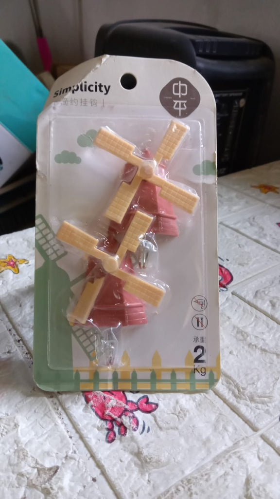The windmill shape adds a decorative touch to the hook, making it both functional and visually appealing. These hooks can be useful for organizing keys, small accessories, or lightweight decorations in your home or office.